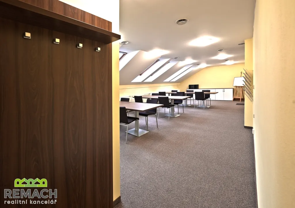 Jedná se o prostor o celkové podlahové ploše 70,26m2, který se nachází v podkroví ve 3. patře v objektu. Součástí pronajímaného prostoru je kuchyňská linka, šatní kout a sociální zařízení včetně sprchového koutu. Možnost vnitropodnikové sítě a okamžitého připojení k internetu.