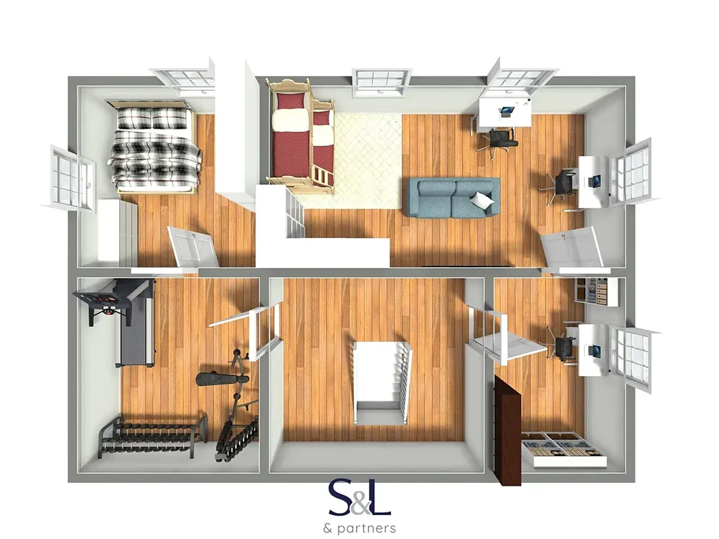 2. patro: 3 pokoje, dílna