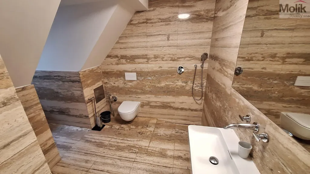 Ve 3.NP je mezonetový byt 3+kk (122 m 2), moderní kuchyňská linka, koupelna se sprchovým koutem.