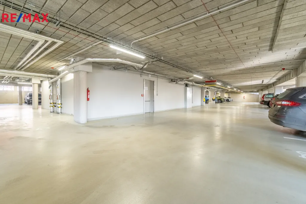 Vjezd do garáže je přes automatická vrata na dálkové ovládání, přístup je zajištěn pouze pro vlastníky a nájemce.