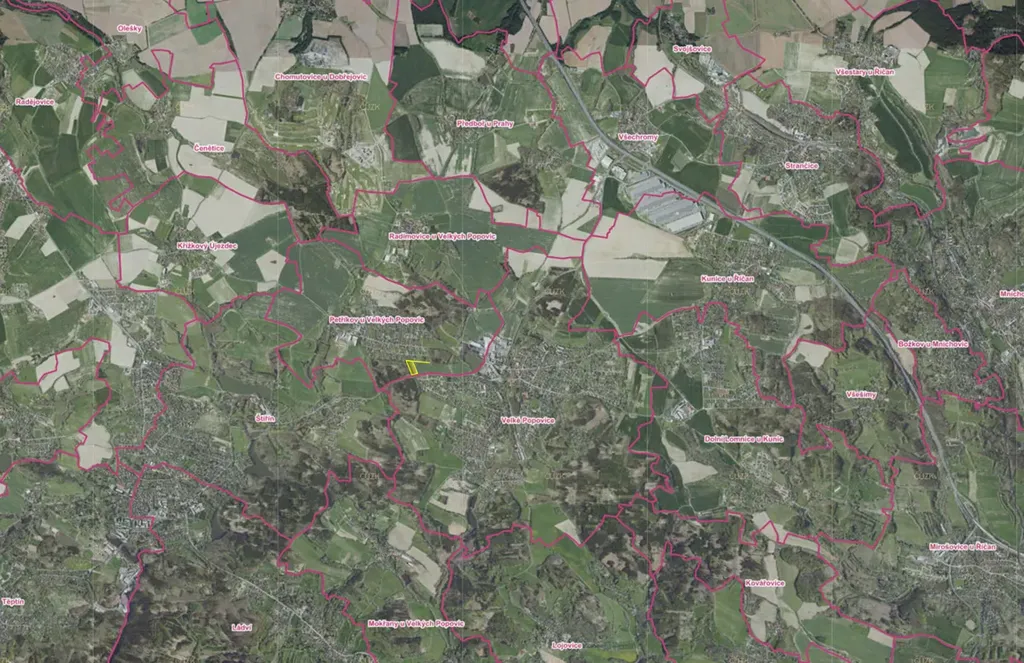 Pozemek k prodeji v katastrálním území Petříkov u Velkých Popovic.