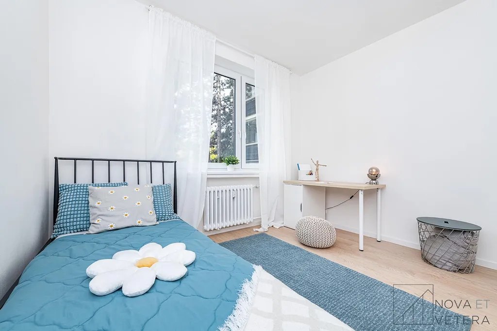 Dispozice bytu nabízí obývací pokoj s kuchyňským koutem, dva samostatné neprůchozí pokoje, které mohou sloužit jako ložnice, dětský pokoj nebo pracovna, koupelnu se sprchovým koutem a toaletou, technickou místnost a vstupní chodbu s dostatkem prostoru pro úložná řešení. Obývací pokoj s kuchyní směřuje na západ do klidné ulice, zatímco oba pokoje jsou orientovány na východ do zeleně, což zajišťuje příjemné světelné podmínky během dne i dostatek soukromí. K bytu dále náleží sklep o velikosti 2 m².