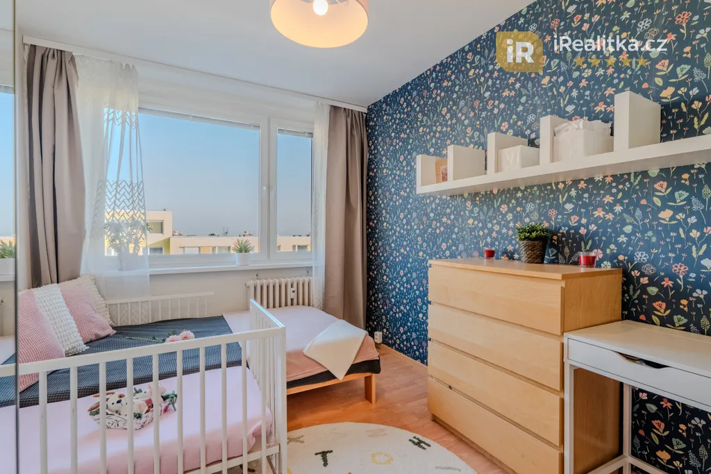 Dále pak v bytě nalezneme ložnici a dětský pokoj, které jsou naopak orientovány na východ. Z prostorné chodby se pak dostaneme také do koupelny se sprchovým koutem, samostatné toalety a praktické komory.
