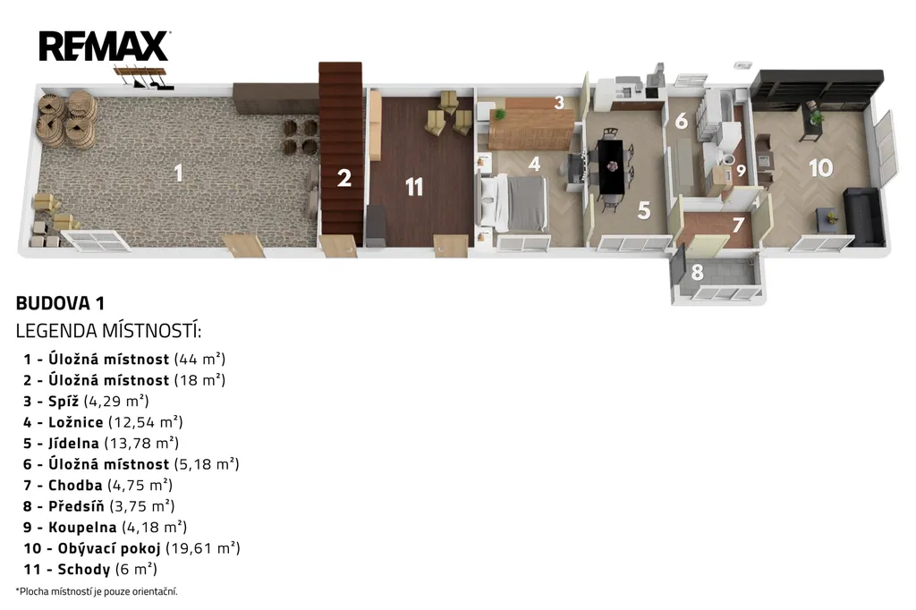 Celkem 415 m² užitné plochy s možností výrazného rozšíření – ideální pro vícegenerační rodinu, investora nebo projekt s ubytovací kapacitou.