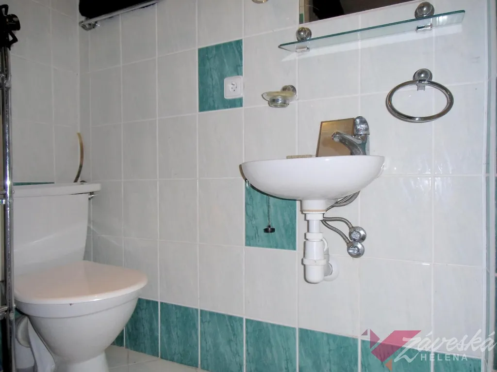Koupelna se sprchovým koutem, umývadlem a WC kombi v patře domu, pračka v přízemí, zavedený internet Cerberos, k dispozici také O2, který má v místě výborné pokrytí..