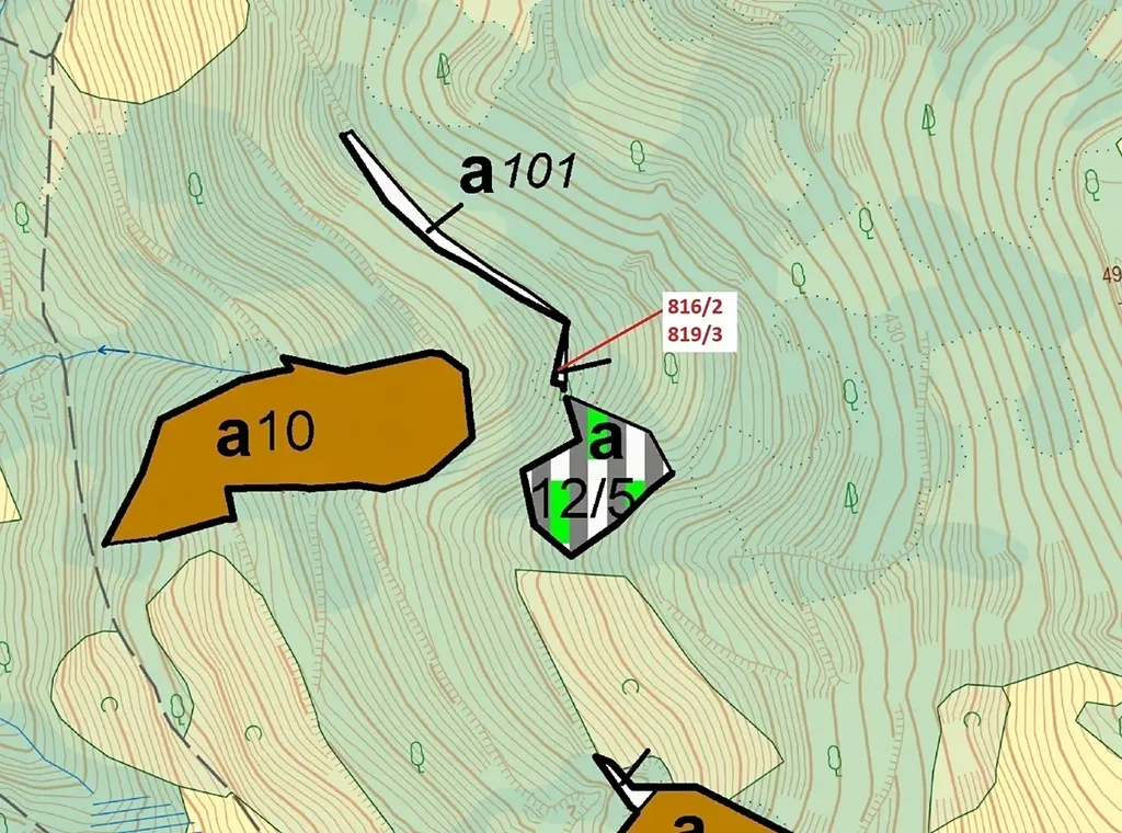 Lesní pozemky o výměře 85 m2, parcelní čísla 816/2, 819/3, podíl  9/10, katastrální území Zubrnice, obec Zubrnice, obec s rozšířenou působností Ústí nad Labem, okres Ústí nad Labem, Ústecký kraj.