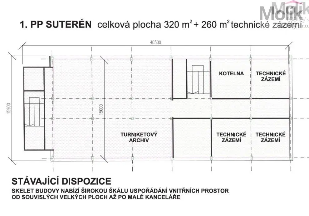 Objekt je celopodsklepený a pro snadnou manipulaci s materiálem či zbožím je k dispozici nákladní výtah.
