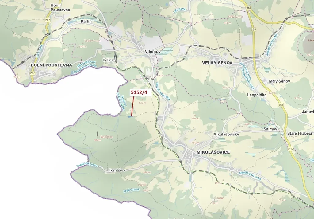 Lesní pozemek o výměře 3 638 m2, parcelní číslo 5152/4, podíl 1/1, katastrální území Mikulášovice, obec Mikulášovice, obec s rozšířenou působností Rumburk, okres Děčín, Ústecký kraj. Po těžbě.