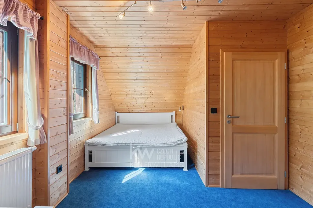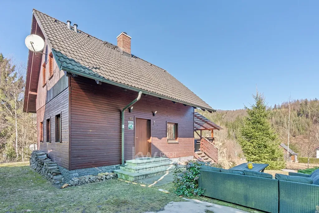 Nabízíme k prodeji dvoupodlažní kompletně vybavenou horskou chatu (106 m²) určenou k celoročnímu užívání, která se nachází v obci Prkenný důl (Žacléř) na východním okraji Krkonoš. Chata stojí na pozemku o velikosti 469 m² a nabízí krásný výhled do okolní přírody, dostatek soukromí a příjemné prostředí - v okolí nachází pouze několik dalších chat. Velkou výhodou je také bezprostřední blízkost sjezdovky, která se aktuálně modernizuje, takže milovníci zimních sportů ocení možnost vyrazit na svah doslova pár kroků od domu.