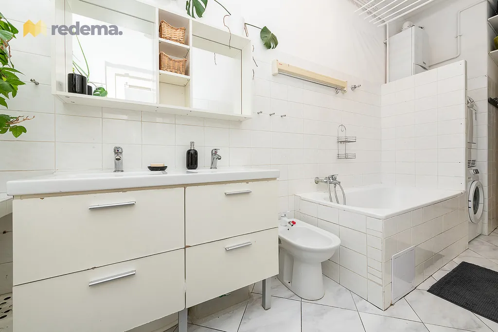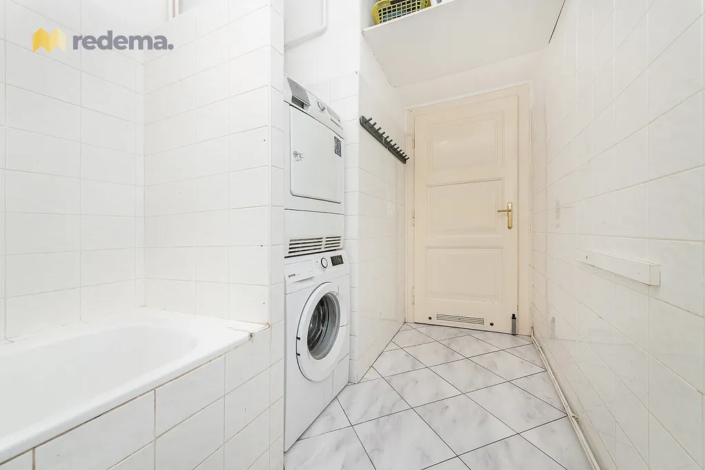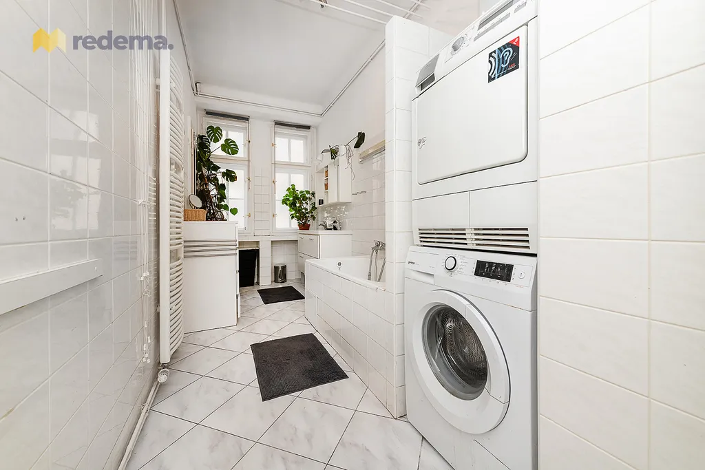 Zázemí bytu tvoří prostorná koupelna s vanou a bidetem (~ 10 m²), samostatná toaleta naproti a reprezentativní vstupní chodba (téměř 10m dlouhá a 1,5m široká), která podtrhuje velkorysý charakter celého interiéru. Byt tak nabídne komfort a pohodlí všem obyvatelům bez ohledu na denní dobu.