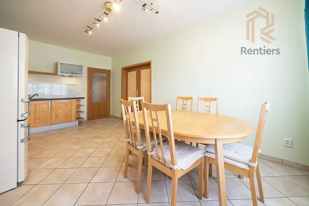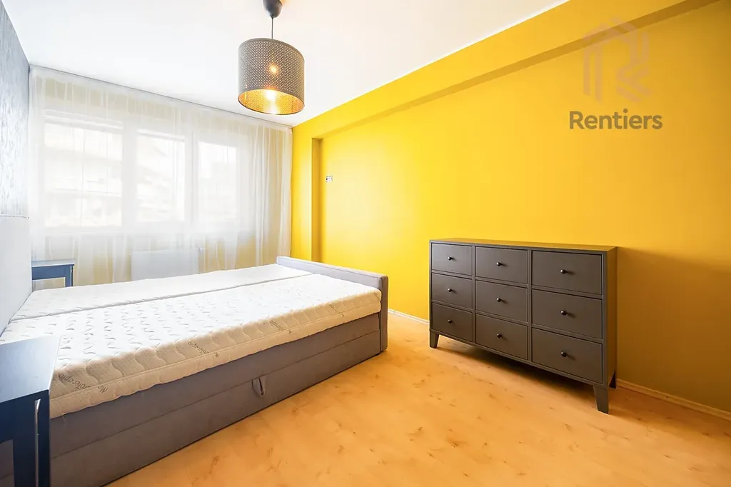 Hledáme nájemníka tohoto krásného bytu dispozice 2+1 s balkónem a samostatnou garáží. Byt je zařízený, přesně tak jak vidíte na fotografiích, tj. koupelna zařízená pračkou, šatní skříň na chodbě, kuchyně se všemi spotřebiči (trouba, sporák, lednice, mikrovlnka i myčka), další šatní skříň v šatně/pracovně, kompletně zařízený obývací pokoj i ložnice. Přesnou dispozici vč. půdorysu si můžete zobrazit i pomocí VR prohlídky (stačí kliknout na "spustit prohlídku" v inzerátu). Z balkónu orientované na slunný východ si ranní kávu si můžete vychutnat s výhledem přímo na Sluneční náměstí, kde je supermarket Albert, lékárna, různé obchody a restaurace. K dispozici je taktéž prostorná samostatná garáž přímo v domě. Dům nabízí klid a zároveň výbornou dostupnost, sousedí přímo se vstupem do stanice metra "B" Hůrka. Prostě vyjdete z domu, ujdete 30 metrů a jste v metru. Romantické procházky zažijete v nedalekém Prokopském údolí, případně Nepomucký rybník hned za domem. Byt je profesionálně uklizený, vymalovaný a připravený k Vašemu nastěhování.Přijďte se podívat na prohlídku a uvidíte sami, že Vás byt i lokalita okamžitě okouzlí.