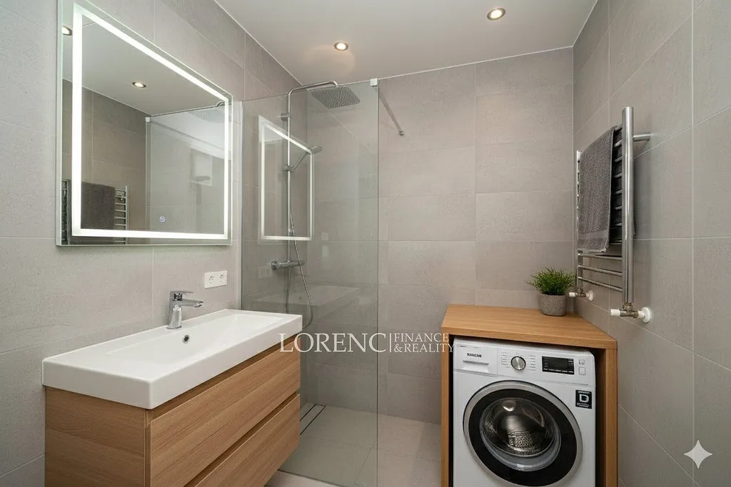 Praktickým benefitem je také komora u vstupu do bytu (3,6 m²) a prostorná předsíň s vestavěnou skříní. K bytu náleží také sklepní kóje.