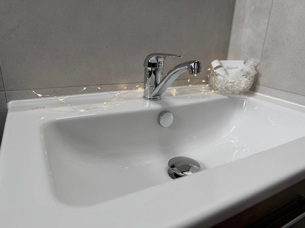 Samostatná ložnice poskytuje dostatek soukromí a klidu pro odpočinek. Koupelna je moderní, čistá a funkčně řešená.