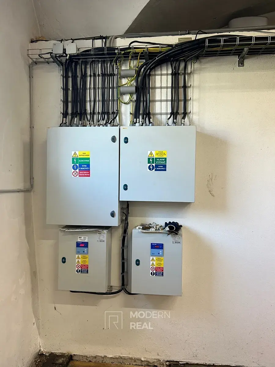 Budova má dvě podlaží, v každém podlaží prostor o výměře 450 m2 a výška 3,8m. Elektřina výkon 2 x63A, voda. Vjezd na dodávku 3x3m. Vhodné na lehkou výrobu např. stolařství, skladování zboží či materiálu. Vnitřní rozměry 7,7 m x 48m. V budově je funkční klimatizace a jsou nainstalovány bezpečnostní kamery napojené na internet.