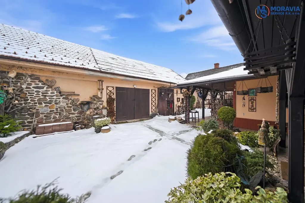 Celková zastavěná plocha včetně nádvoří činí 470 m, což poskytuje dostatek prostoru pro venkovní aktivity. Zahrada o rozloze 316 m je ideální pro zahradničení, relaxaci nebo rodinné posezení k tomu jsou dva přístřešky na automobily, dvě garáže, dílna, stodola.