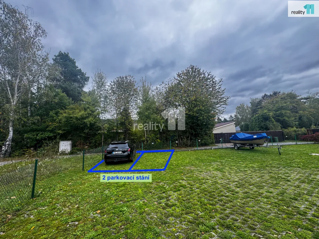 K bytu náleží dvě parkovací stání na oploceném pozemku s posuvnou bránou na dálkové ovládání.