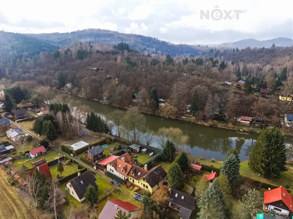 Dům stojí na obdélníkovém, ze tří stran oploceném pozemku o celkové výměře 567 m², z čehož pečlivě udržovaná okrasná zahrada tvoří 463 m². Ta nabízí dostatek prostoru pro relaxaci, dětské hry, zahradničení nebo jen pro nicnedělání, které je zde překvapivě návykové. Využít k tomu můžete rozlehlou terasu s výhledem na řeku. A pokud bude hlad, tak lze i něco ugrilovat v kamenném grilu.