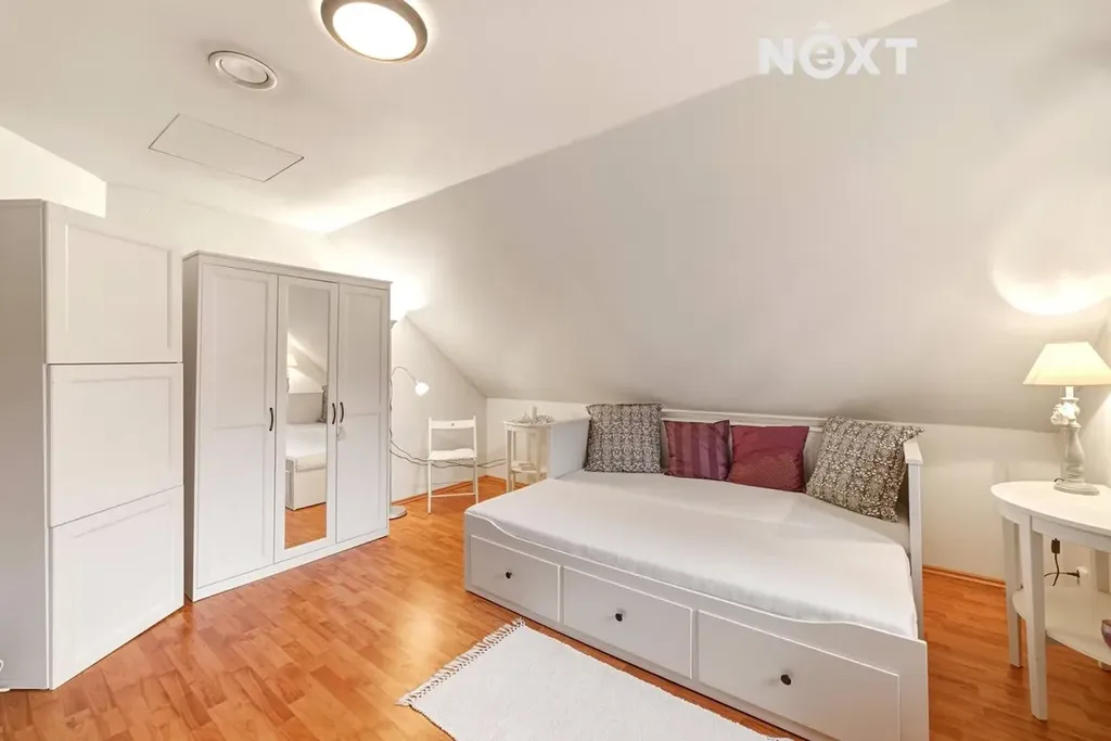 Dispozice 5+kk doplňují dvě koupelny a prakticky řešené úložné prostory, takže každá věc má své místo – a pokud ne, pořád je kam ji dát.