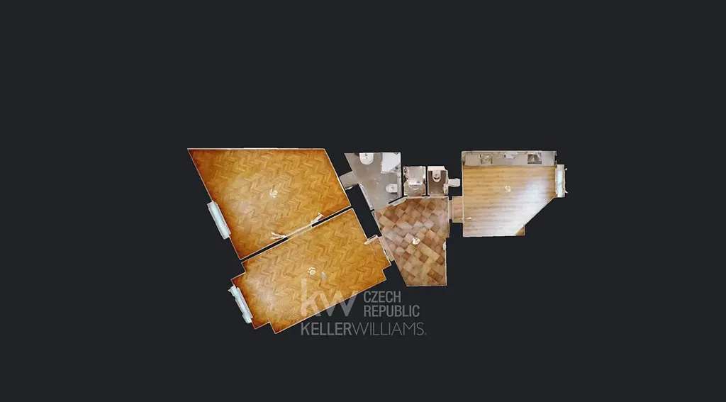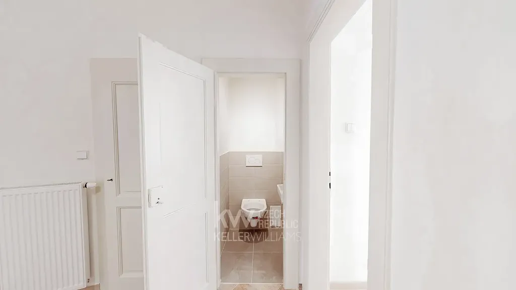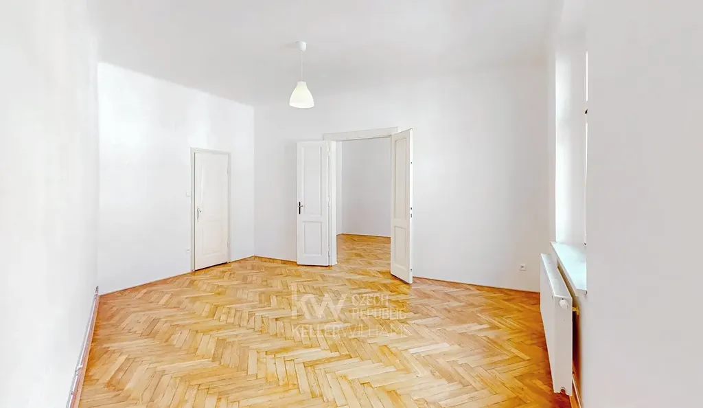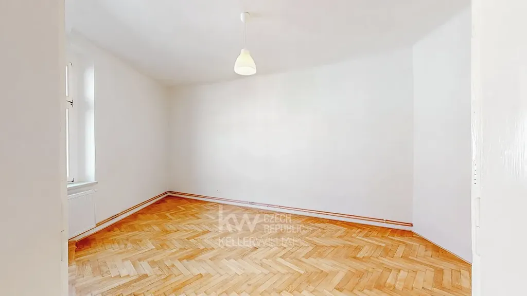 Byt zaujme vzdušností díky vysokým stropům, příjemnými parketami a velmi praktickou dispozicí – samostatná ložnice, velký obývací pokoj a oddělená kuchyně.
