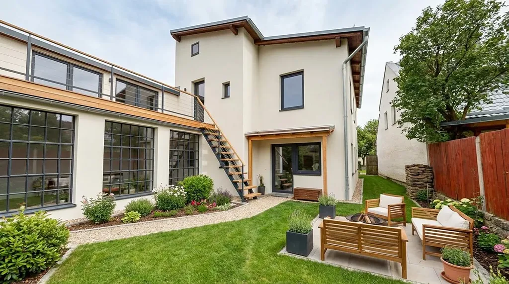 Celková užitná plocha domu přesahuje 360 m2, což umožňuje i vybudování několika samostatných bytových jednotek nebo kombinaci bydlení s podnikáním.