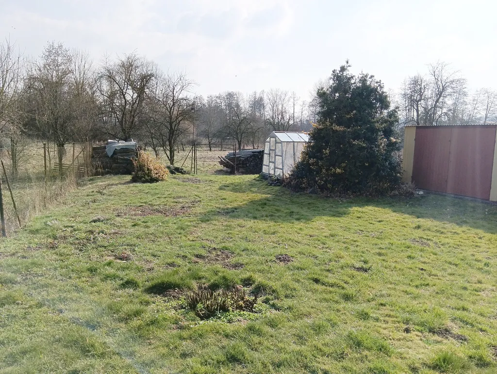 Na pozemku se nachází pergola, skleník, plechová garáž na zděné podezdívce, ovocné stromy, švestka, jabloně na další části pozemku.. Veškeré sítě: elektrický sloupek na pozemku, přípojka na vodu, kanalizace.