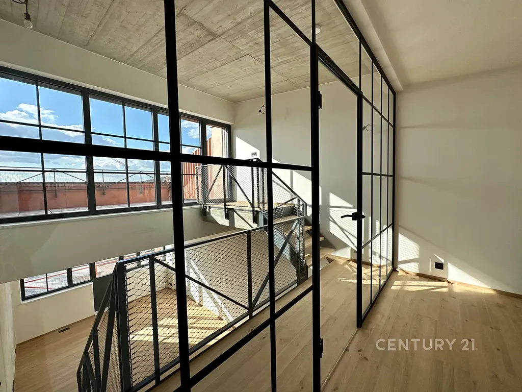 V zastoupení developera nabízíme k prodeji loftový byt 2+kk s balkonem (6 m2) a terasou (15 m2) s velkolepým výhledem na Prahu. Byt je orientovaný na západní stranu, takže v jarních a letních měsících si tak můžete vychutnávat posezení se sklenkou dobrého vína při západech slunce nad krásnou Prahou. V bytě se nachází v dolním patře koupelna s toaletou a v horním patře samostatná toaleta.