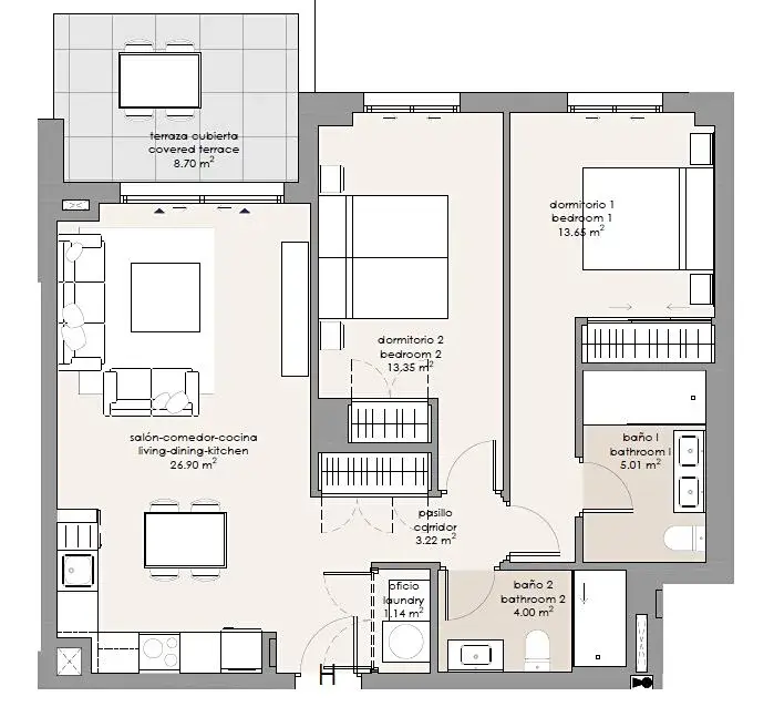 Projekt nabízí moderní apartmány o dispozicích 3+kk a 4+kk ve třetí linii staveb od moře s cenami od 297 000 EUR + DPH. Každá jednotka je navržena s důrazem na funkčnost, komfort a maximální využití přirozeného světla typického pro oblast Costa del Sol.