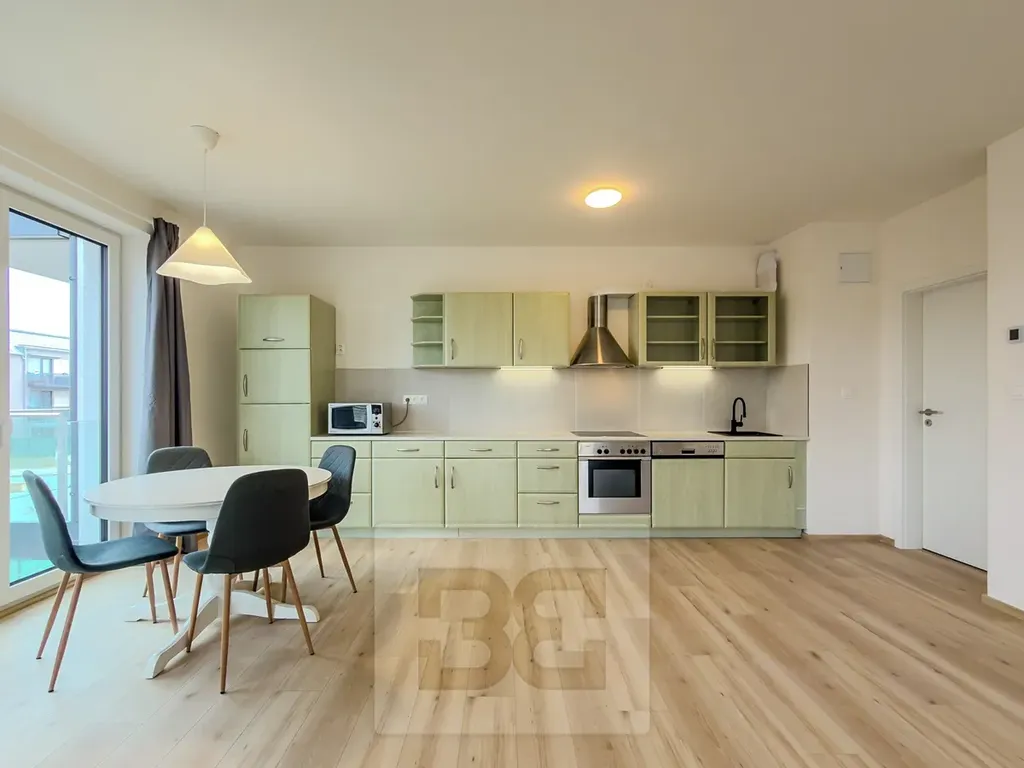 Byt se pronajímá částečně zařízený – k dispozici je kuchyňská linka se spotřebiči (lednice, trouba, varná deska, digestoř, myčka, mikrovlnná trouba), jídelní stůl se židlemi, sedačka, pračka, osvětlení a závěsy.