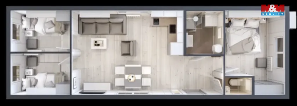 Dům MALAGA představuje moderní a promyšlené řešení pro všechny, kteří hledají komfortní rodinné bydlení nebo stylové rekreační zázemí bez kompromisů. Nadčasový design inspirovaný aktuálními architektonickými trendy vytváří příjemnou atmosféru, ve které se budete cítit opravdu doma. Dům se nachází na pozemku v obci Vítězná o rozloze 1000 m². Na ploše 57 m² nabízí dům prakticky řešenou dispozici se třemi ložnicemi, které poskytují dostatek soukromí pro celou rodinu, dále světlý obývací prostor s kuchyňským koutem, a dokonce dvě moderní koupelny pro maximální pohodlí. Dům je dodáván kompletně vybavený nábytkem, kuchyňskými spotřebiči, pračkou i klimatizací – stačí se jen nastěhovat a začít bydlet. V ceně zahrnuta cena domu i pozemku. S výhodným financováním Vám rádi pomůžeme. Realizace je možná do 6 měsíců od vyřízení stavebního povolení, se kterým vám pomůžeme. Prohlídka domu je možná po domluvě s makléřem, který Vás provede celým showroomem v Rychnově nad Kněžnou.