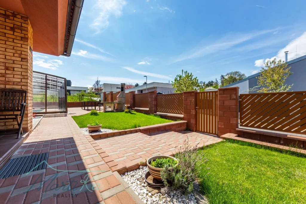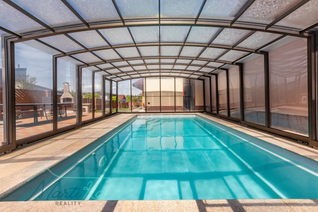 Na pozemku o velikosti 973 m² (zahrada 716 m²) vás čeká upravená a vzrostlá zahrada, která poskytuje soukromí i prostor pro každodenní život venku. Dominantou je vyhřívaný bazén se slanou vodou a zastřešením, díky kterému si koupání užijete od jara až do podzimu.