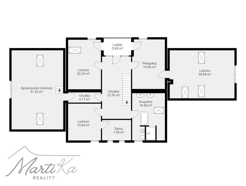 - dispozice 7+1 včetně společenské místnosti 51 m²