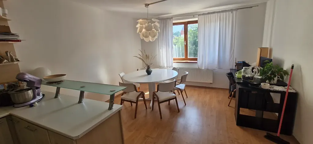 Dispozičně se byt skládá z obývacího pokoje s kuchyňským koutem a jídelní částí, ložnice s balkonem, dalšího pokoje, koupelny a samostatné toalety. Kuchyňská linka je plně vybavena včetně spotřebičů. V ložnici se nachází manželská postel a vestavěné skříně.Byt je volný od 1.4.2026