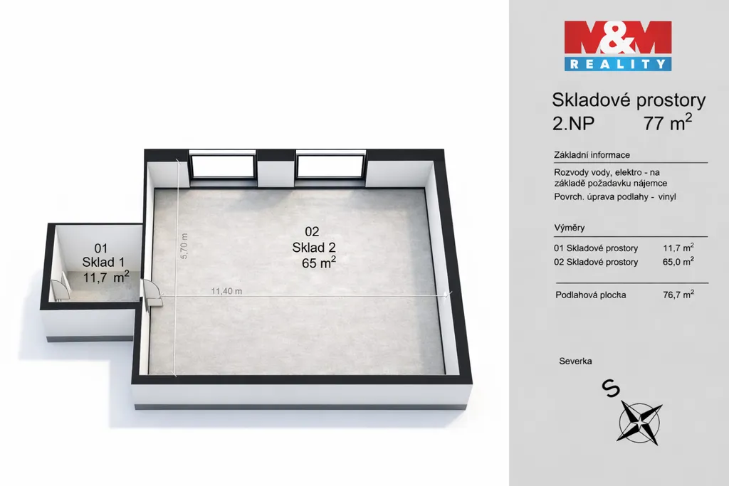 Pronájem skladového prostoru, 77 m², Benešov, ul. Vnoučkova
