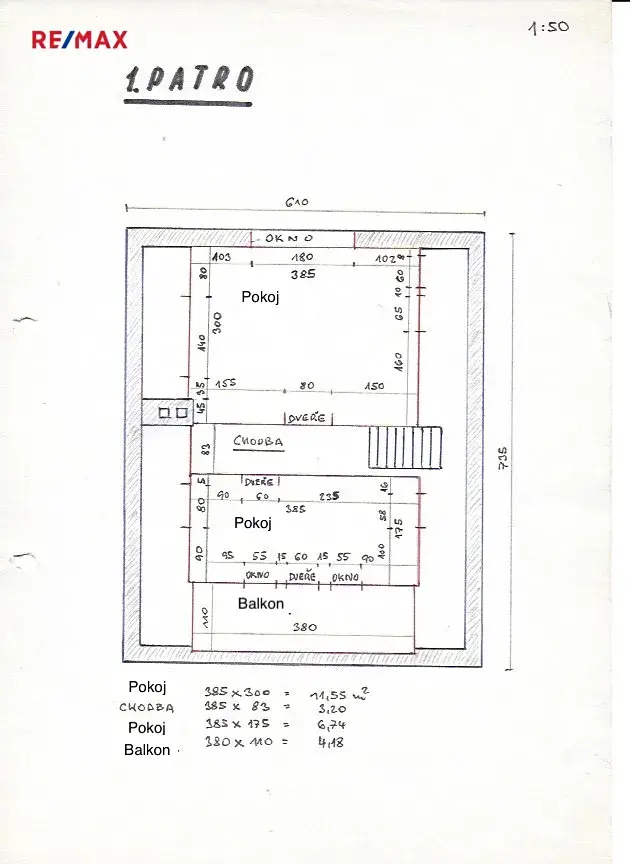 • menší pokoj (6,2 m²) se vstupem na lodžii (4,8 m²)