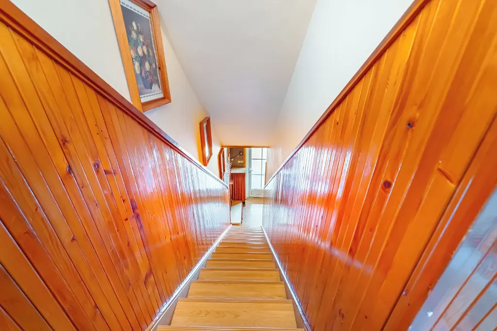 V bytě se nachází vstupní veranda, předsíň, obývací pokoj, kuchyň s jídelním koutem (plynový sporák s el. troubou, dřez), samostatné WC s oknem, spíž, schodiště do patra. V 1.patře pak 2 průchozí pokoje, koupelna (umyvadlo, vana, místo na pračku, okno).