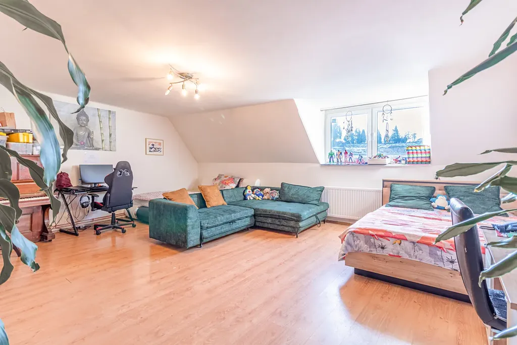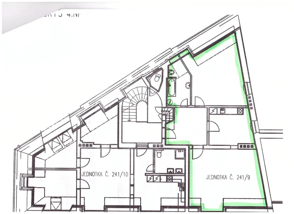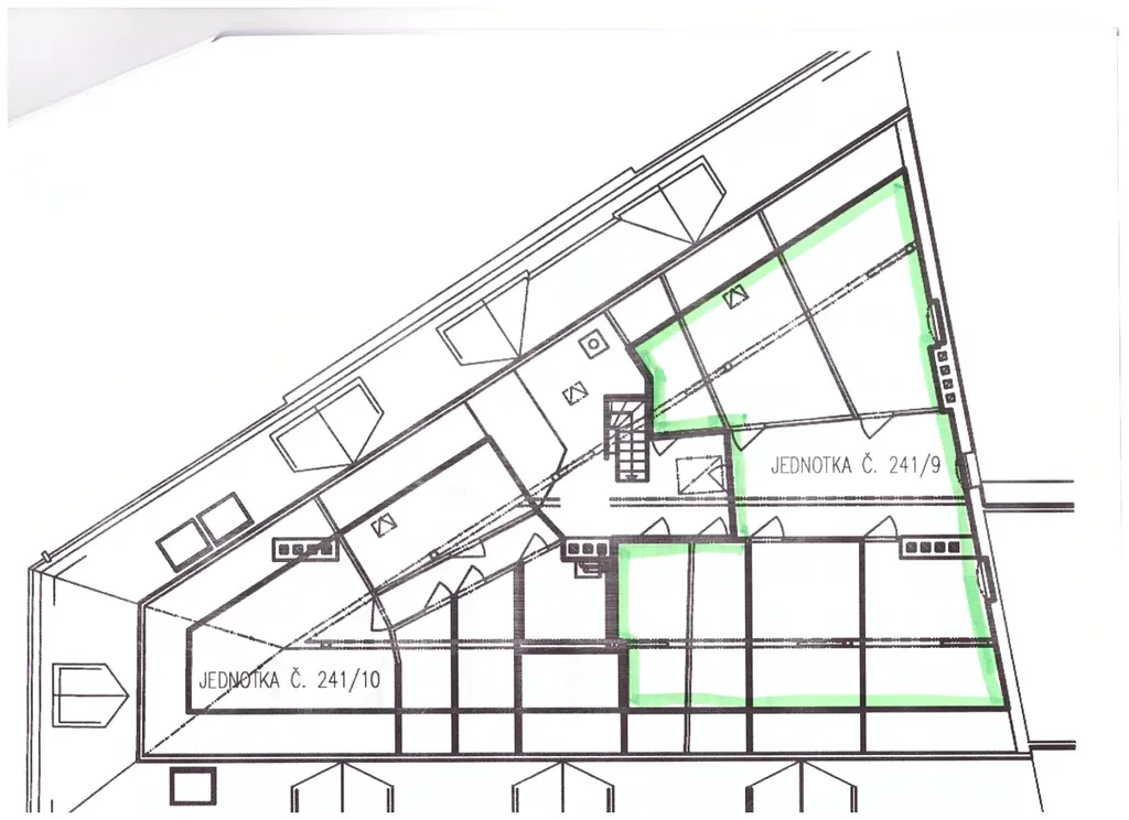 K bytu náleží půdní prostor nad bytem. Vchod na půdu, schodiště a přístup ke střešnímu výlezu je společná část domu. Je možné rozšíření bytu do půdy (mezonet). Jen pokud by se zasahovalo do střechy atd., je nutný souhlas Společenství vlastníků.