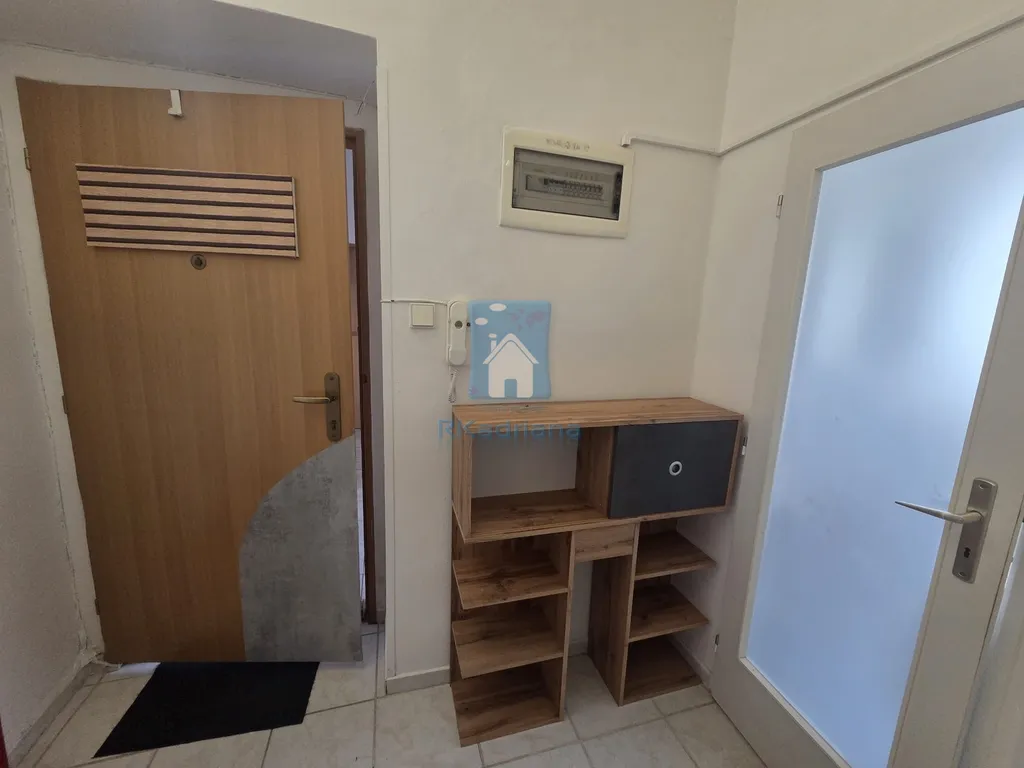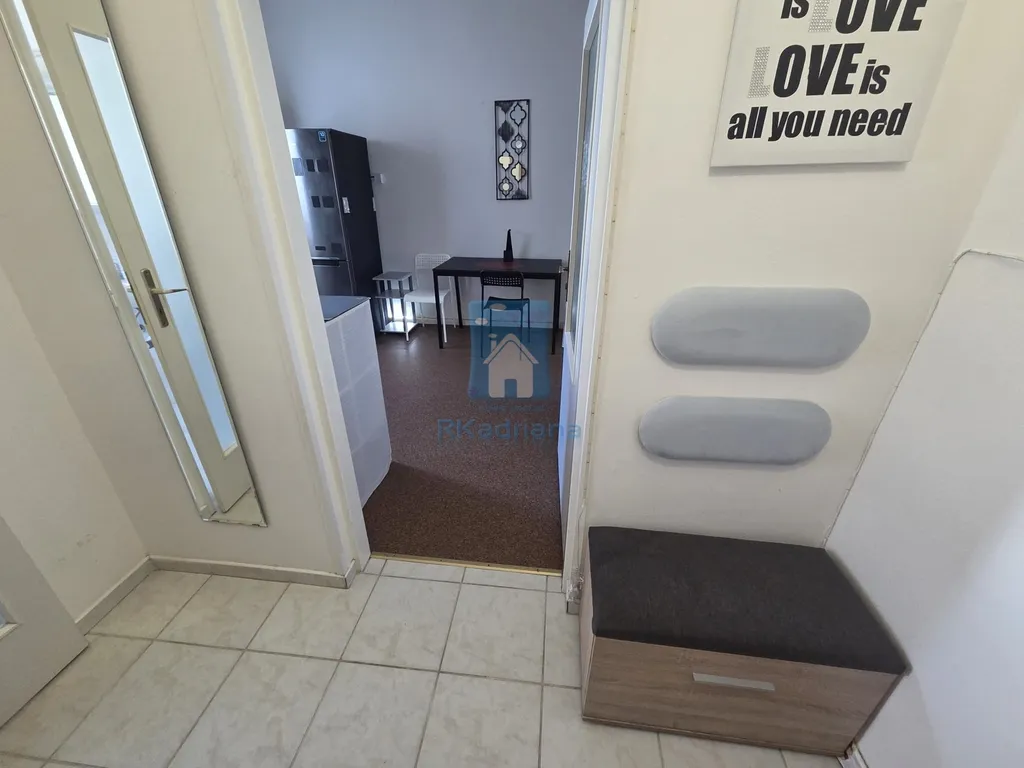 Ložnice je vybavena postelí, kosmetickým stolkem se židlí a šatní skříní. V koupelně se nachází umyvadlo, toaleta, skříňka, pračka a sprchový kout. V bytě dále nalezneme obývací pokoj s pohovkou, televizní stěnou, jídelním stolem a kuchyňským koutem (kuchyňská linka, kombinovaný sporák, lednice). V prostorné předsíni je k dispozici botník.
