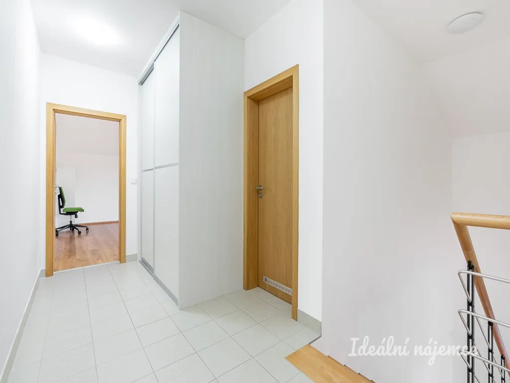 Ložnice spojuje prostorná chodba kde se nachází šatní skříň v které najdeme schovanou pračku.