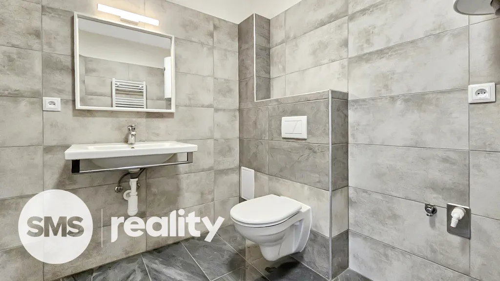 Kuchyň je vybavena moderní kuchyňskou linkou s elektrickou troubou, indukční varnou deskou, digestoří a granitovým dřezem. Součástí je také příprava na myčku. V průběhu týdne bude dřez doplněn o vodovodní baterií. Koupelna nabízí prostorný sprchový kout, toaletu, umyvadlo se zrcadlem. Samozřejmostí je příprava na připojení pračky. Ohřev vody zajišťuje elektrický bojler, vytápění je řešeno centrálním kotlem pro celé patro.