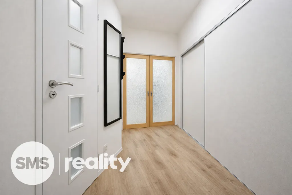 V předsíni se nachází praktický úložný prostor atypického tvaru o velikosti _ m², dále předsíňová stěna společně s botníkem a zrcadlem. V celém bytě jsou položeny kvalitní vinylové podlahy a nainstalovány energeticky úsporné spotřebiče a LED osvětlení, které přispívají k nízkým provozním nákladům. V případě zájmu je navíc možnost pronájem jednoho parkovacího místa ve dvoře domu.