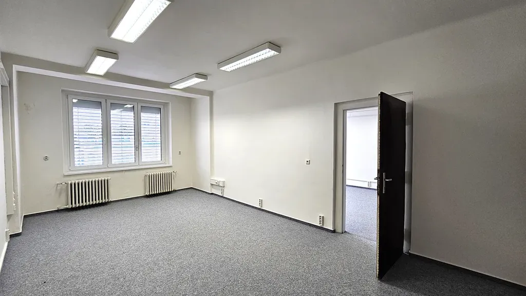 Kancelářské prostory 47m2 (dvě kanceláře: 26,7m2 a 21,7m2) s balkonem (3,7m2)ve druhém patře kancelářské budovy poblíž metra Dejvická. Výtah. Recepce. Kuchyňka a sociální zařízení k dispozici na každém patře.