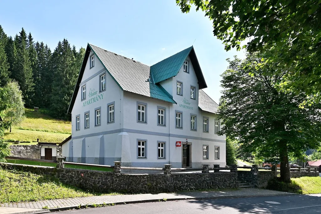 Exkluzivně nabízíme k prodeji výjimečný apartmánový dům včetně samostatně stojícího domu se zastavěnou plochou 55m2 ( kolaudovaný jako sklad a kancelář) v malebném horském středisku Nové Hamry, pouhých 20 km od Karlových Varů. Tato nemovitost nabízí nejen luxusní bydlení, ale i jedinečnou investiční příležitost s vysokou návratností. S úchvatnou polohou v nejzachovalejší části Krušných hor a vynikající dostupností, se tato nemovitost stává ideální volbou pro ty, kdo hledají klidné útočiště či chtějí provozovat prestižní penzion, školící centrum, či firemní rekreační zázemí pro náročnou klientelu.