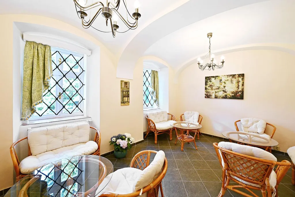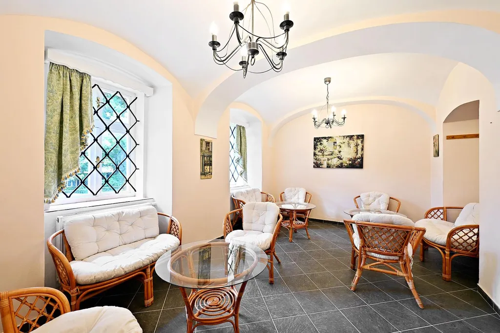 Dům je po nadstandardní generální rekonstrukci a je ihned připraven k provozu. Na čtyřech podlažích je rozmístěno devět samostatných a kompletně vybavených apartmánů plus dva půdní apartmány 2kk a 1kk.. Šest apartmánů o dispozici 2+kk, které jsou ideální pro rodinné pobyty, a tři útulné apartmány 1+kk, ideální pro páry či jednotlivce. Pro hosty, kteří hledají maximální komfort, je jeden z přízemních apartmánů vybaven originální Jacuzzi vířivkou, masážní sprchou a parní lázní, vše s podlahovým vytápěním.