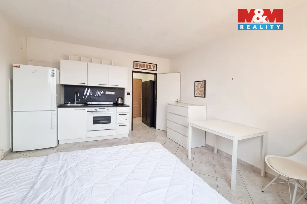 Interiér je prakticky řešený a plně odpovídá fotografiím. Kuchyňská linka je vybavena elektrickou troubou, dvouplotýnkovým vařičem a lednicí. Součástí nájmu je také částečné vybavení kuchyně, což zajišťuje pohodlné nastěhování bez nutnosti větších investic.