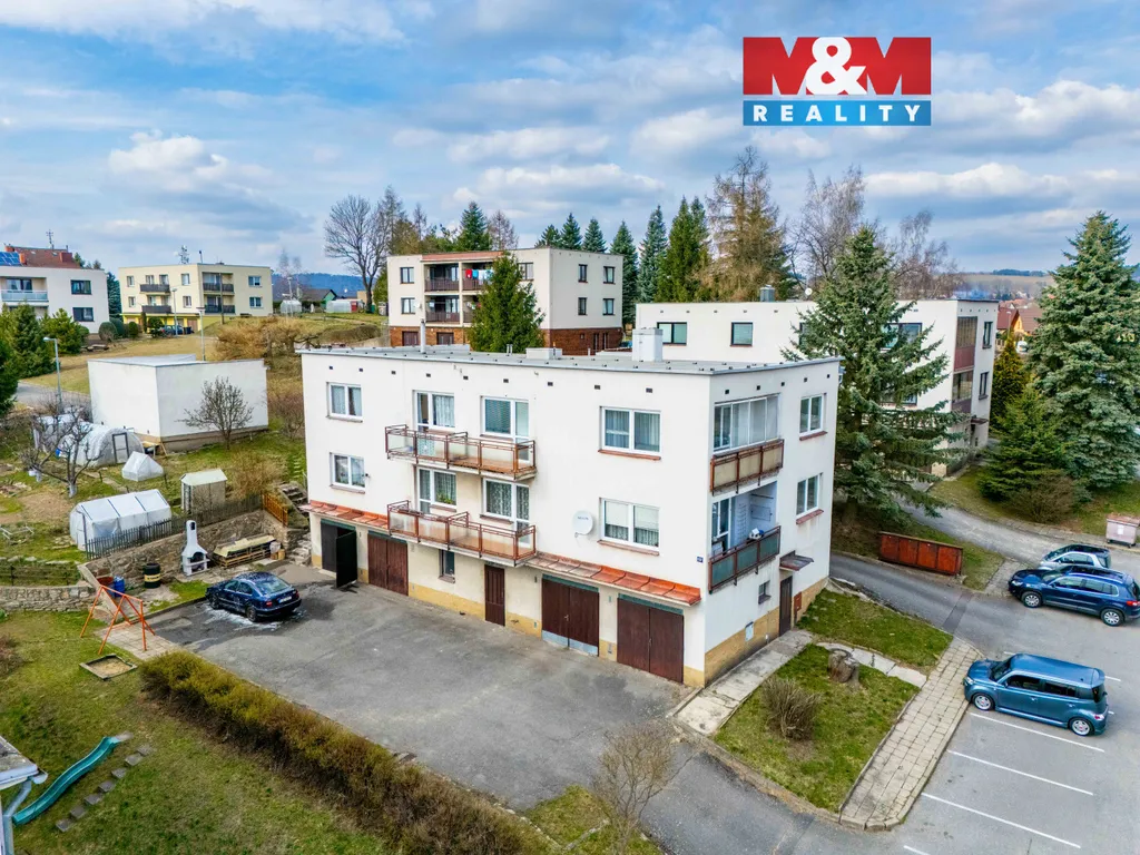 Součástí prodeje je i garáž, která se nachází přímo v domě. K bytu také náleží větší zděný sklep.