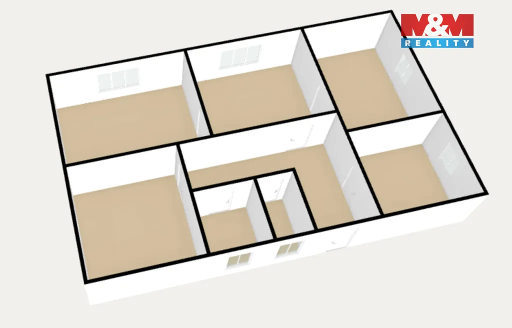 Každé obytné patro disponuje koupelnou, kuchyní a čtyřmi pokoji, takže dům pohodlně poslouží početné rodině nebo jako dvougenerační bydlení. Z posledních úprav stojí za zmínku výměna plastových oken, jinak je nemovitost připravena na kompletní rekonstrukci.