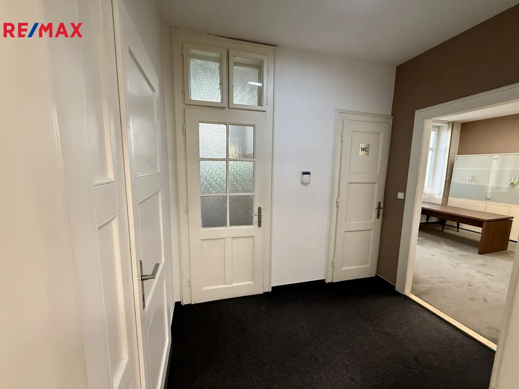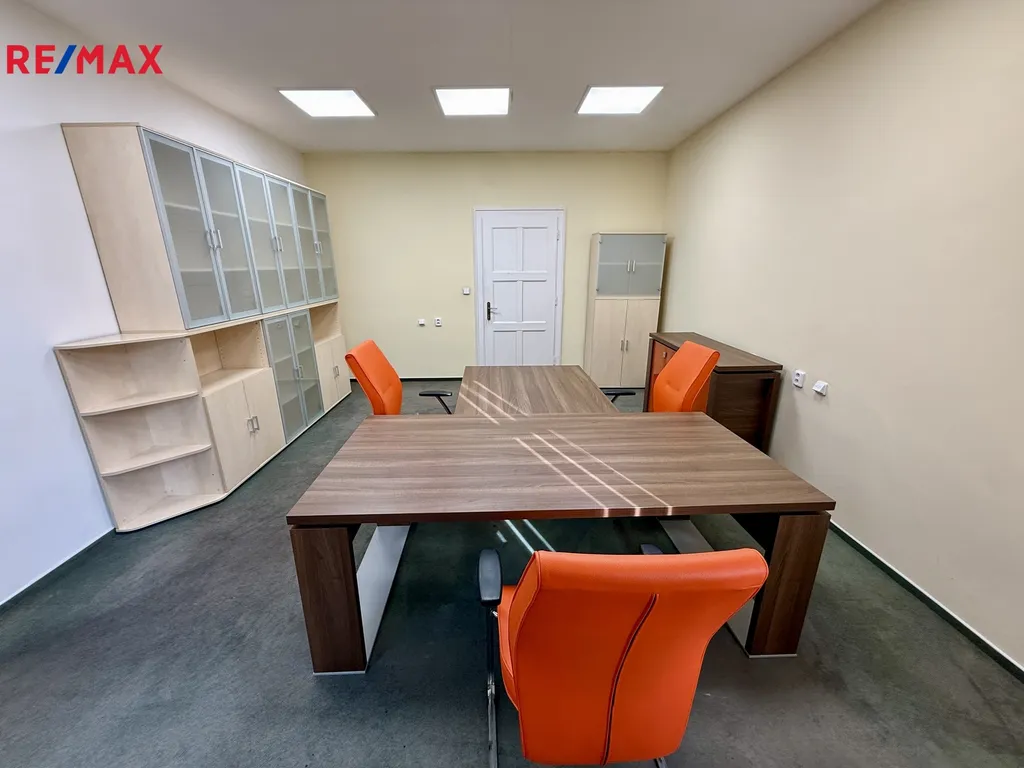 Kancelář má dva samostatné vchody, přes vstupní dveře z hlavní chodby, což nabízí možnost rozdělení prostor na dvě ideální poloviny.