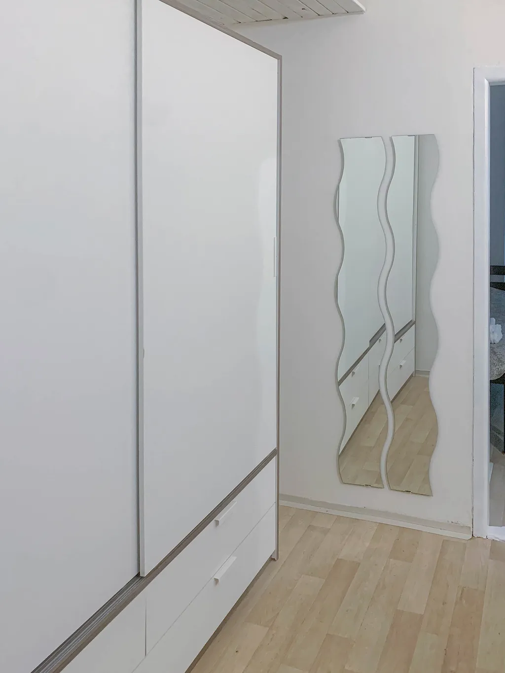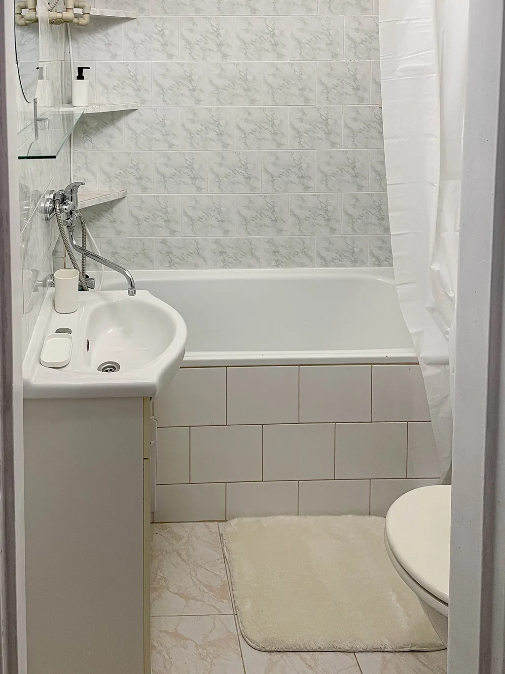 Byt se nachází ve zvýšeném přízemí cihlového domu a jeho okna jsou orientována na jihozápad do klidné zeleně, což zajišťuje příjemné světlo i větší soukromí.