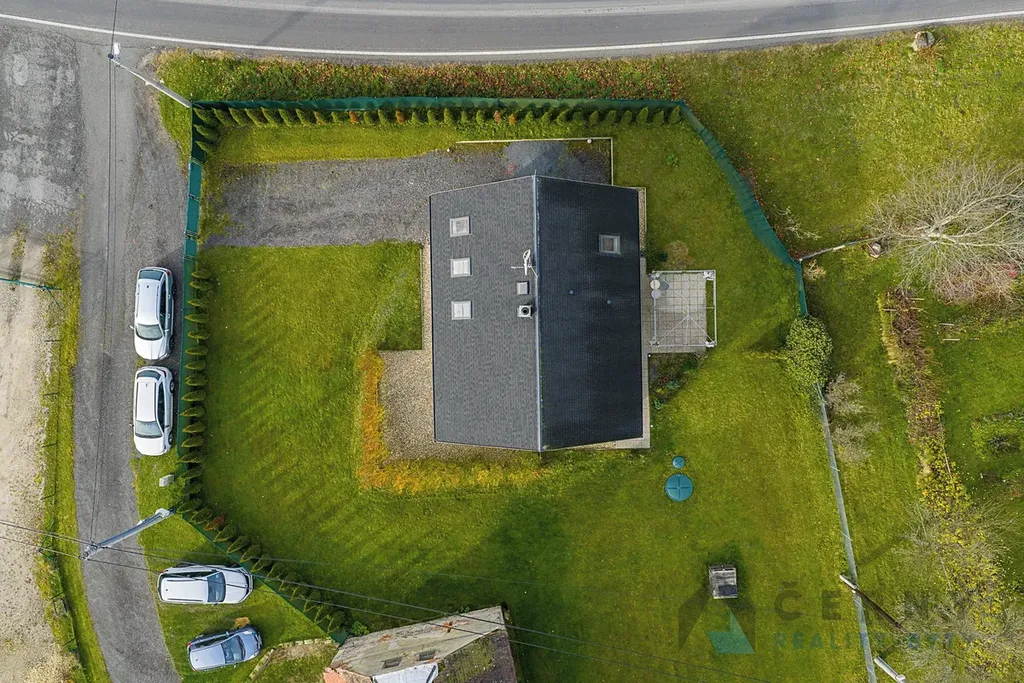 Jednopodlažní dům s obytným podkrovím a velkým půdním prostorem stojí na vlastním pozemku o výměře 828m2.