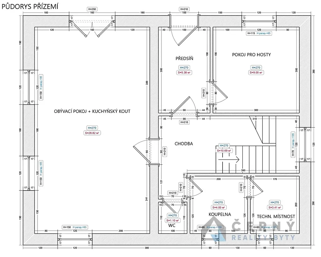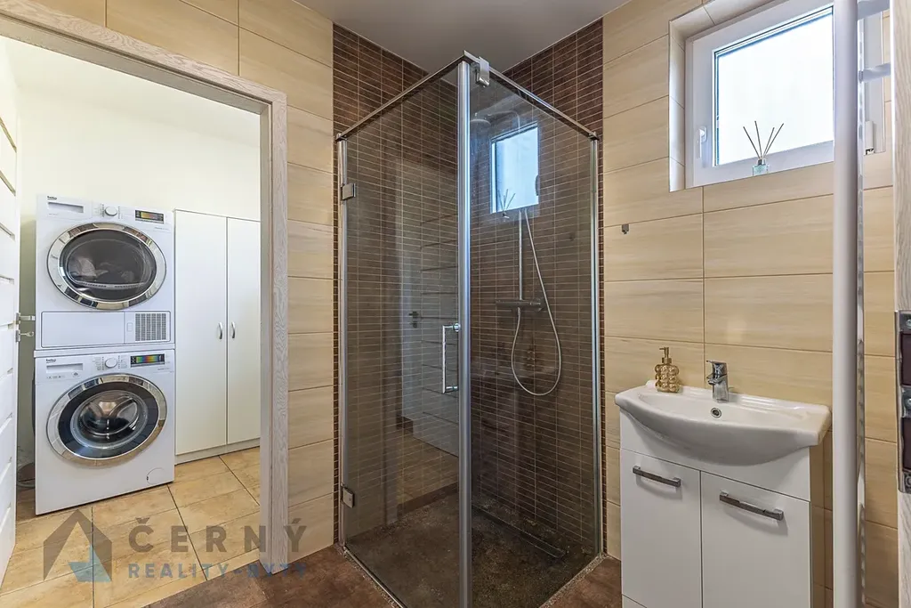 Dispozičně je řešen jako 5+kk se dvěma koupelnami a technickou místností. Užitná plocha objektu činí 153m2.